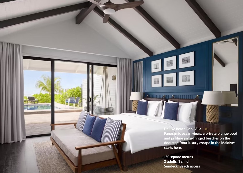 This is paradise – Villa Nautica Maldives to be precise, an uncompromising luxury and comfort. A network of paved pathways winds through the lush grounds, connecting the Beachfront accommodation, Water Villas, Villa with Private Pool, gourmet dining spots, sports facilities, and an inspiring spa – each serving to make your holiday whatever you’d like it to be. Treat yourself to true tropical-inspired luxury at Villa Nautica, where unforgettable experiences await.